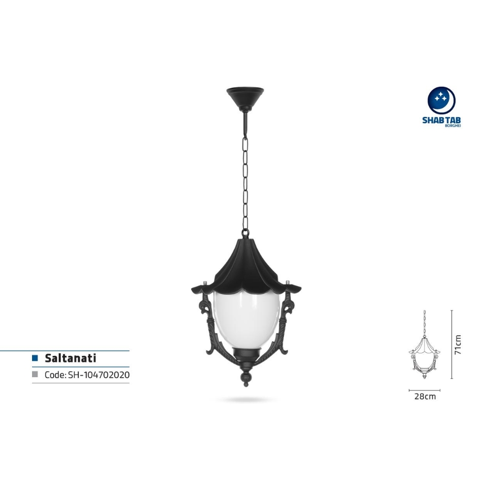 چراغ آویز شب تاب مدل سلطنتی – یکی از چراغ های محوطه ای زیبا و ظریف شب تاب چراغ سلطنتی است که طراحی خاص و منحصر به فردی دارد. چراغ سلطنتی کلاهکی دارد علاوه بر جذابیت، جلوی هدررفت نور را از سمت بالا می گیرد و دیزاینی کاملا خاص دارد. چراغ سلطنتی شب تاب در پنج مدل چراغ دیواری، چراغ پارکی، چراغ سرلوله، چراغ آویز و چراغ سردری تولید می شود که تمامی نیازهای شما را برای چراغ های محوطه پاسخ می گوید. چراغ سلطنتی را می توانید با شاخه های سناتور، کلاسیک و پایه های ترنج و صنوبر نصب کنید و از جذابیت آن لذت ببرید.
