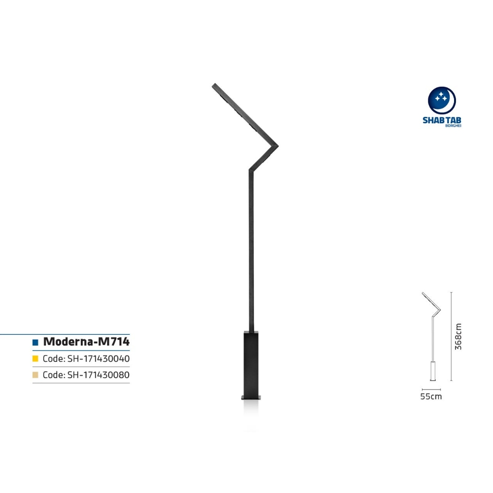 چراغ خیابانی شب تاب مدرنا M714 به عنوان چراغ پارکی در دو سایز یا اندازه 2.5 متر و 3 متر موجود است که میتوانید از نمایندگی شهر خود سفارش دهید.