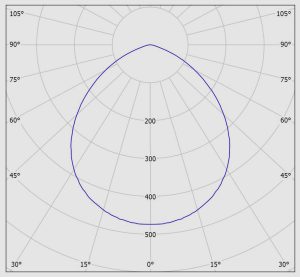 با توجه به استفاده از دیفیوزر از نوع ساتن شیری پلی کربنات، پخش نور این چراغ به صورت متقارن يكنواخت انجام میشود، که منحنی پخش نور این چراغ را در تصویر زیر مشاهده مینمایید: