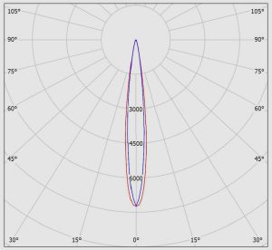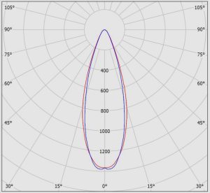 در مدل نور تیز از لنز نوع N که زاویه بسته تری معادل 14 درجه دارد استفاده میشود؛ که اصولا این مدل برای نورپردازی های تیزتر و اغلب بر روی ستون های باریکتر استفاده میشود. پخش نور این مدل در شکل زیر نمایش داده شده است: