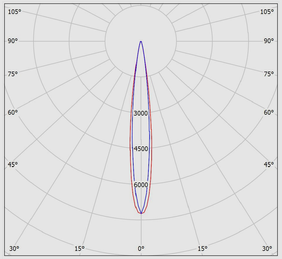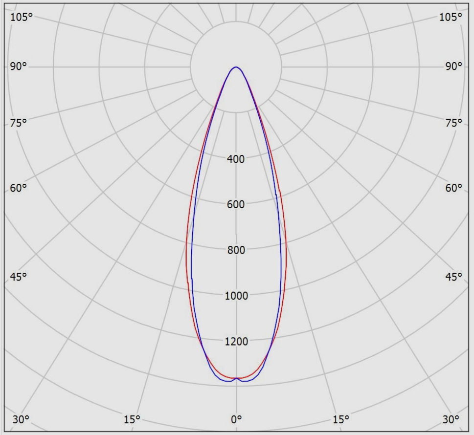در مدل نور تیز از لنز نوع N که زاویه بسته تری معادل 14 درجه دارد استفاده میشود؛ که اصولا این مدل برای نورپردازی های تیزتر و اغلب بر روی ستون های باریکتر استفاده میشود. پخش نور این مدل در شکل زیر نمایش داده شده است: