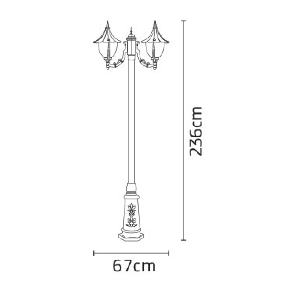 خصوصیات و ویژگی های چراغ پارکی سلطنتی دو شاخه کلاسیک پایه ارغوان: