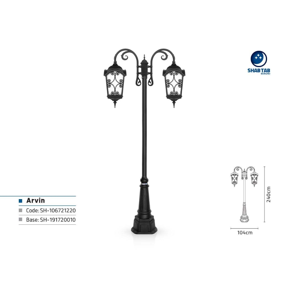 خصوصیات و ویژگی های چراغ پارکی شب تاب آروین دو شاخه آرتا پایه صنوبر: