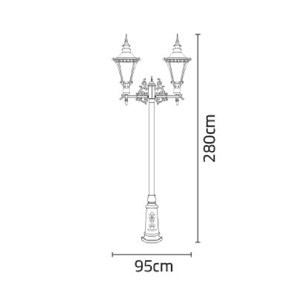 خصوصیات و ویژگی های چراغ پارکی شب تاب اسپانیایی دو شاخه رز پایه ارغوان: