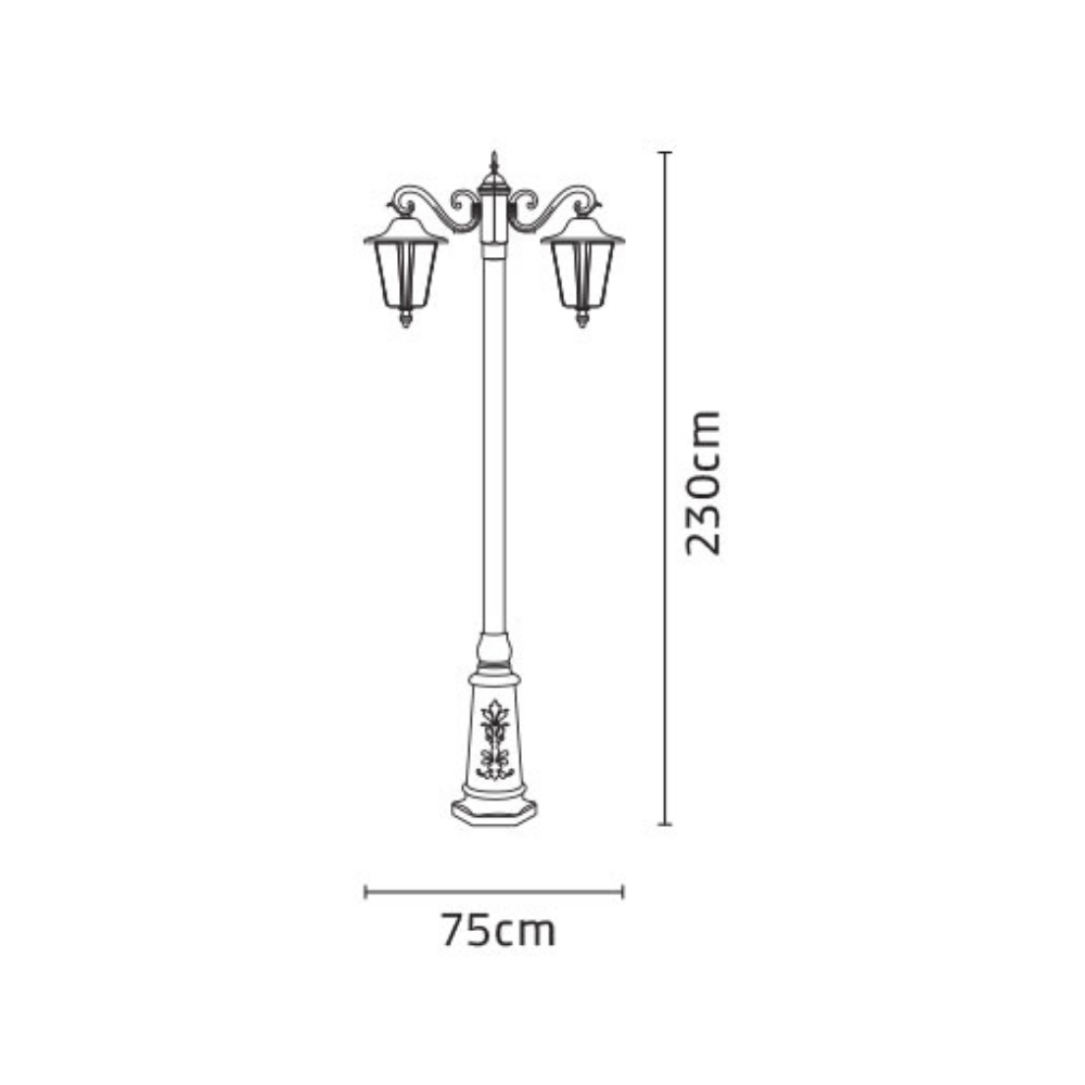 مشخصات فنی چراغ پارکی شب تاب اطلس دو شاخه سناتور پایه ارغوان: