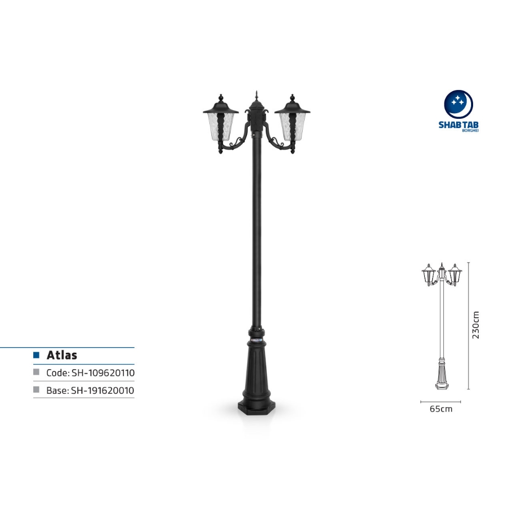 چراغ پارکی شب تاب اطلس دو شاخه کلاسیک پایه سرو – کنار هم قرار گرفتن دو کیفیت زیبایی و کاربرد، معمولا توقع را در انتخاب محصول بالا میبرد و انتخاب آن را سختتر میکند، با این حال در چنین مواقعی یک انتخاب کلاسیک معمولا بهترین گزینه است. چراغ اطلس یکی از محصولات پرطرفدار برند روشنایی شبتاب برقعی است که با توجه به زیبایی کلاسیکی که در خود دارد در ابتدا نظرها را به خود جلب میکند و بعد از آن با ویژگیهایی که در خود دارد، به اطمینانبخش بودن این انتخاب میافزاید.
