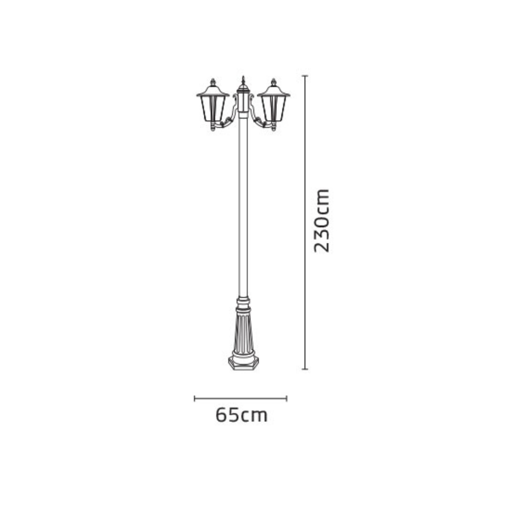 مشخصات فنی چراغ پارکی شب تاب اطلس دو شاخه کلاسیک پایه سرو: