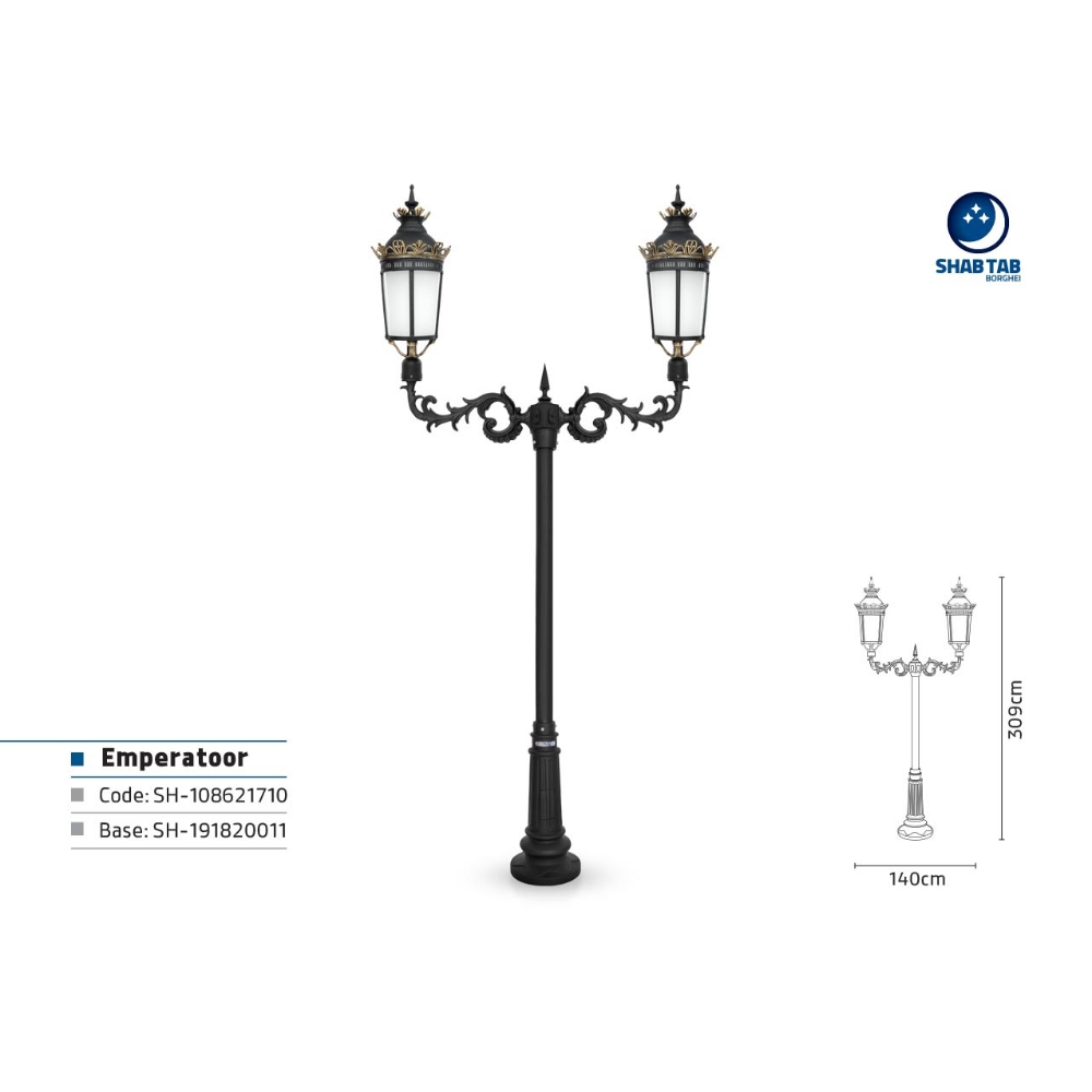 چراغ پارکی شب تاب امپراطور دو شاخه آرین سربالا پایه نارون – از آنجایی که امروزه نور یکی از مهم‌ترین عناصر روح‌بخش زندگی است، چراغ‌های روشنایی نیز به همین نسبت در روزمره‌ی ماجایگاه خودشان را پیدا کرده‌اند. چیزی که اهمیت چراغ‌های محوطه‌ای را دوچندان می‌کند این است که در زمان غیاب خورشید و در تاریکی، یکی از مهم‌ترین آکسسوارهای خیابان‌ها و فضاهای شهری به حساب می‌آیند و به همین دلیل هم شکل و ظاهری که دارند، بر روی اتمسفر و هویت آن فضا اثرگذار است.