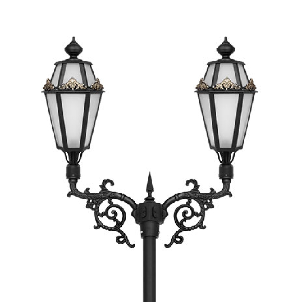 زیبایی و ویژگی های چراغ پارکی شب تاب برنارد دو شاخه پیچک پایه نارون