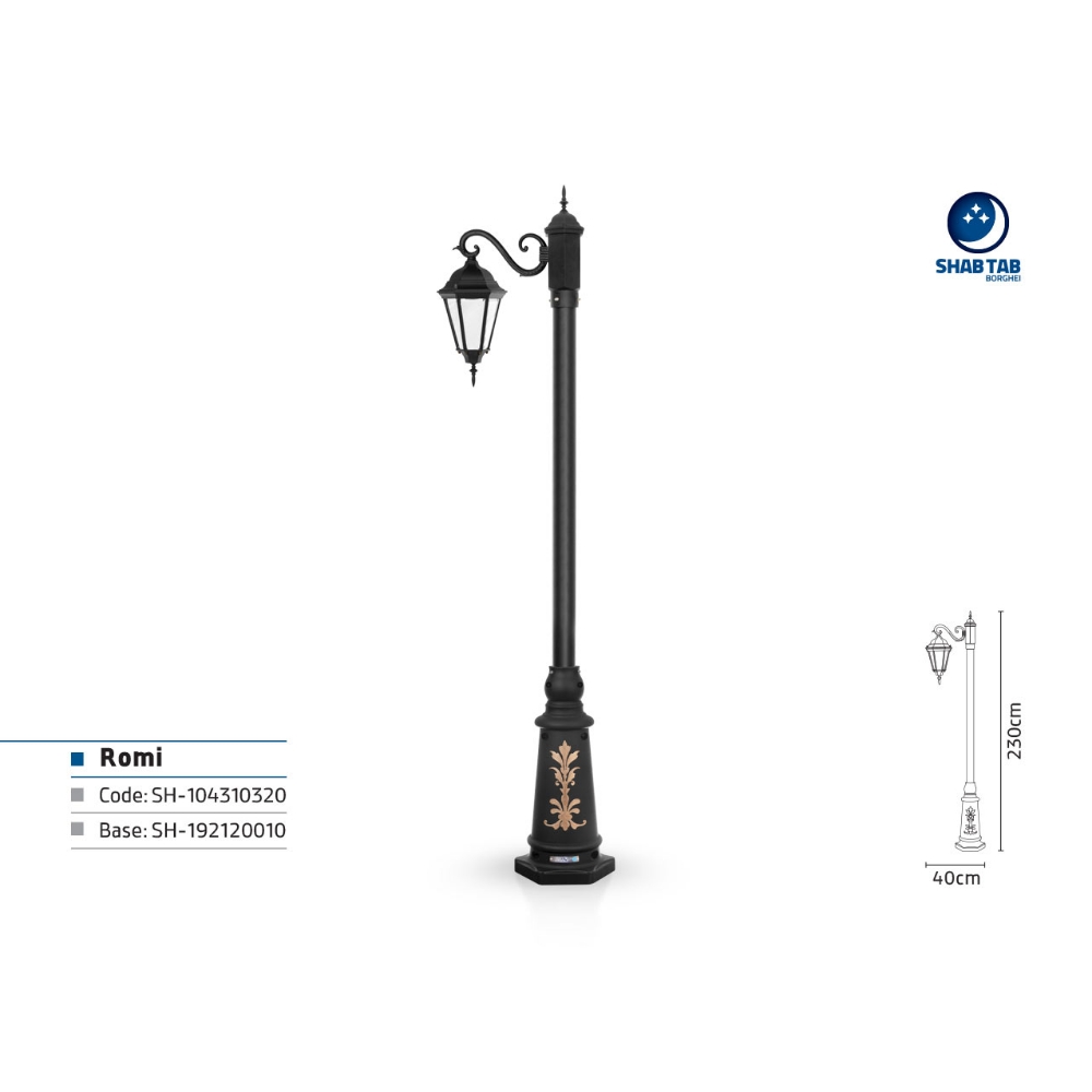 خصوصیات و ویژگی های چراغ پارکی شب تاب رومی تک شاخه سناتور پایه ارغوان: