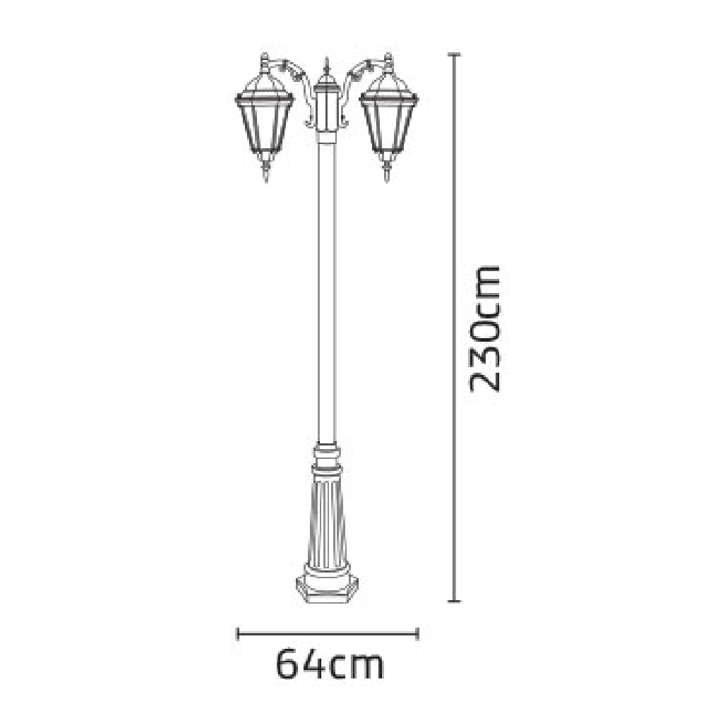 خصوصیات و ویژگی های چراغ پارکی شب تاب رومی دو شاخه کلاسیک پایه سرو: