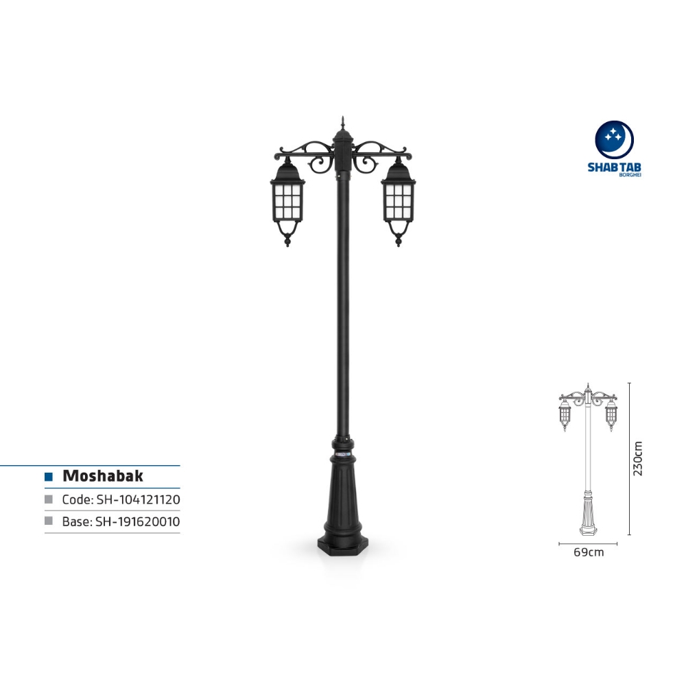 چراغ پارکی شب تاب مشبک دو شاخه سارینا پایه سرو – طراحیهای متفاوت را همه نمیپسندند، بلکه بیشتر این خاصپسندان هستند که روی خوش به آنها نشان میدهند! چراغ مشبک یکی از همین محصولات متفاوت صنایع روشنایی شبتاب است که در عین متفاوت بودن، توانسته طرفداران خاص خودش را به دست بیاورد. این چراغ که در چهار رنگ سفید، مشکی، برنز و مسی تولید میشود، انتخاب خوبی برای ویلاها، باغها و یا محیطهایی است که در تزئینات بنای آنها به صورت دکوراتیو و خلاقانه از آجر استفاده شده است چرا که هماهنگی ریتم شبکههای روی حباب این چراغ و نمای ساختمان، به خصوص در شب بسیار جلوهگر به نظر خواهد آمد.