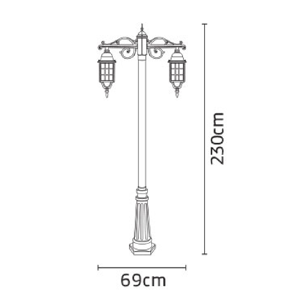 خصوصیات و ویژگی های چراغ پارکی شب تاب مشبک دو شاخه سارینا پایه سرو: