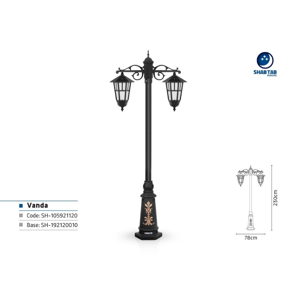 خصوصیات و ویژگی های چراغ پارکی شب تاب وندا دو شاخه سارینا پایه ارغوان: