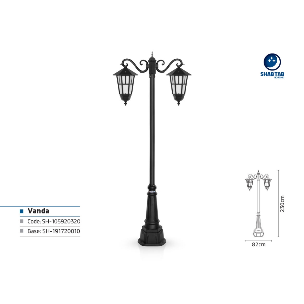 خصوصیات و ویژگی های چراغ پارکی شب تاب وندا دو شاخه سناتور پایه صنوبر: