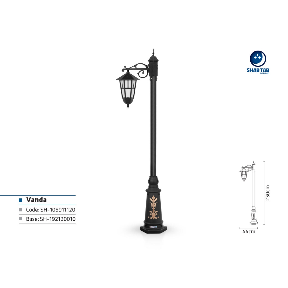 خصوصیات و ویژگی های چراغ پارکی شب تاب وندا شاخه سارینا پایه ارغوان: