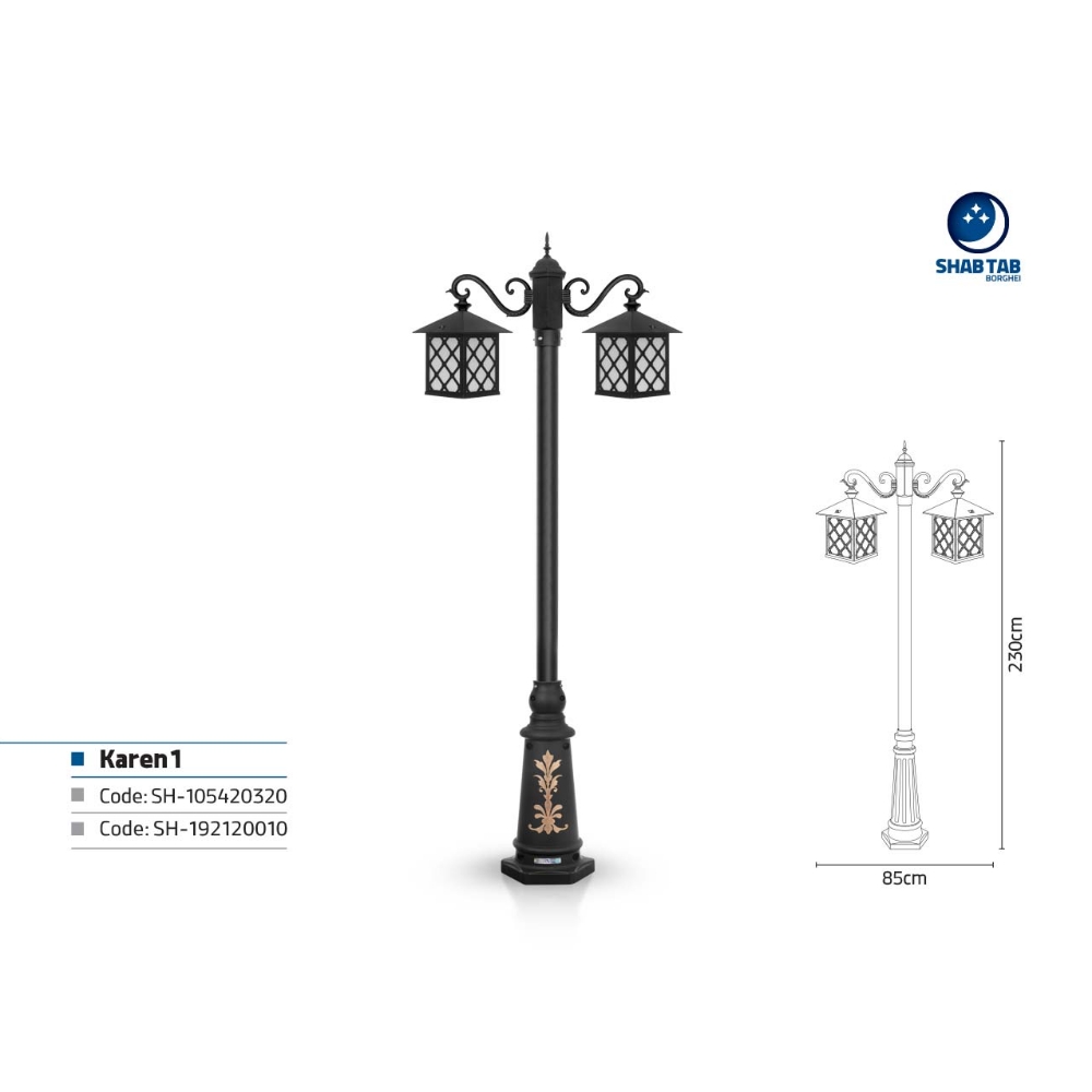 سایر خصوصیات و ویژگی های چراغ پارکی شب تاب کارن دو شاخه سناتور پایه ارغوان: